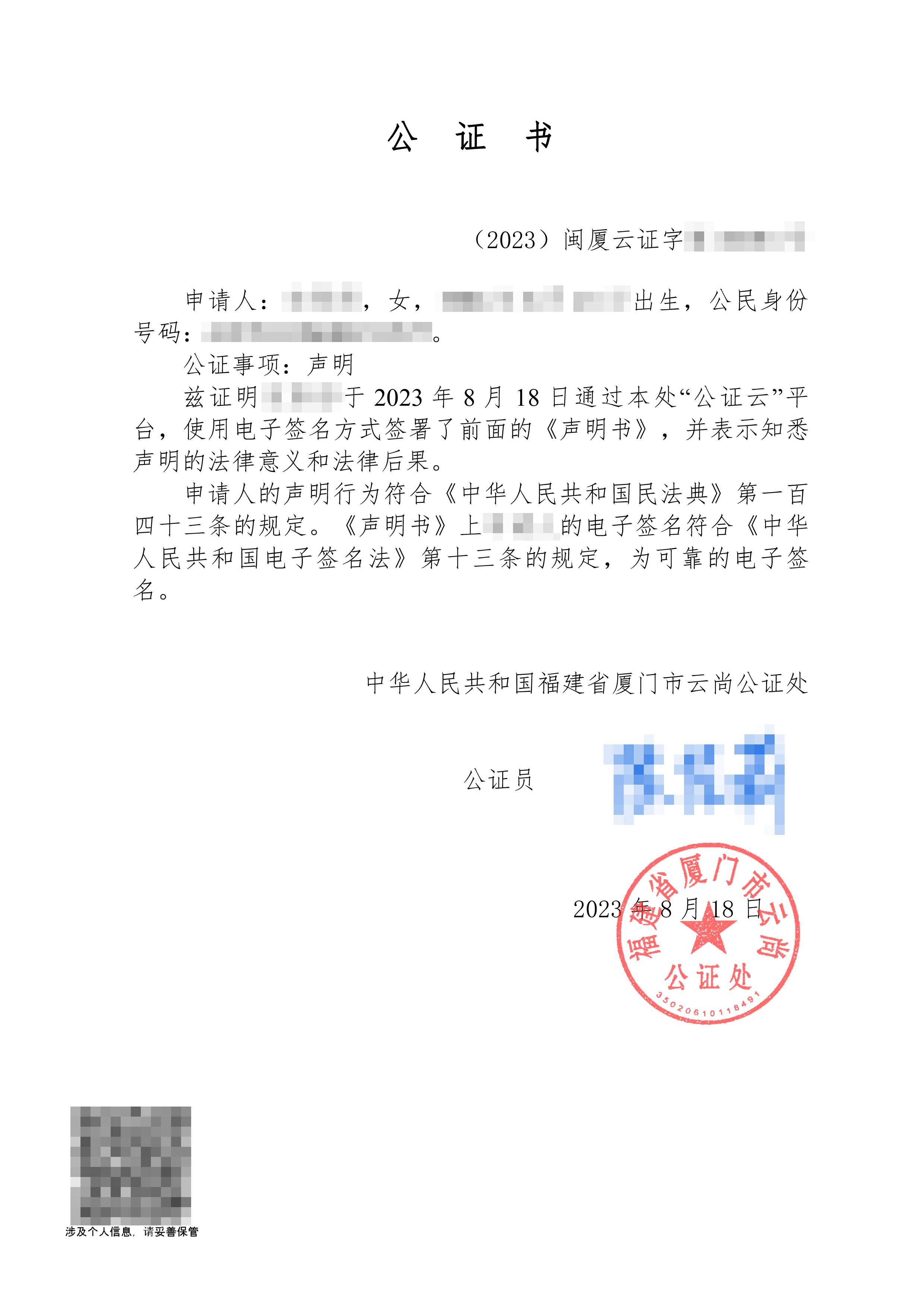 公证书示例查看